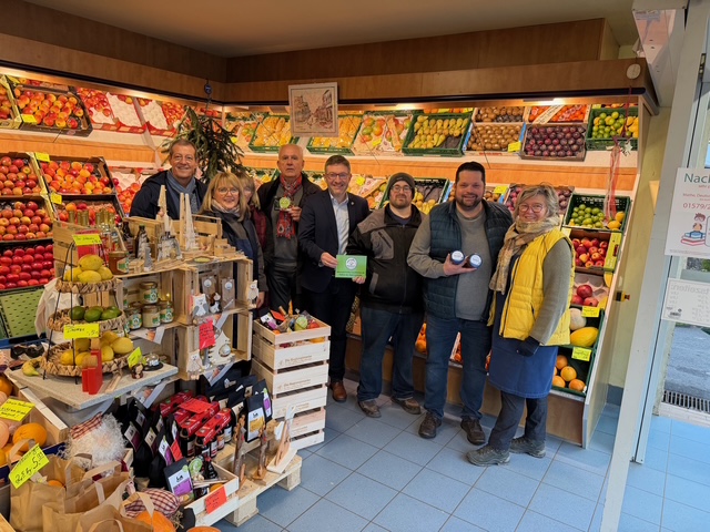 Bei der offiziellen Aufnahme in die Regionalmarke waren neben Landrat Sören Meng auch Regionalmarkenkoordinator Willi Walter und WFG-Geschäftsführer Klaus Häusler anwesend. Nach einem Rundgang durch den Laden und einem tollen Empfang durch Ralph Mörsdorf und sein Team waren sich alle einig: Dieses Konzept hat Hand und Fuß.